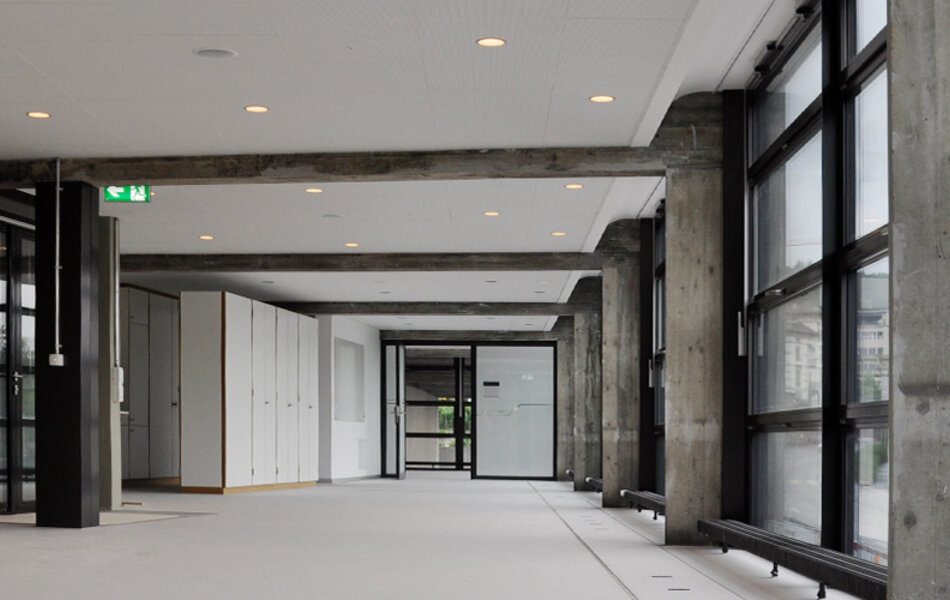Das bestehende Gebäude wurde 1970 erstellt. Der Sanierungsbau umfasst die Sanierung der Fassade, des Brandschutzes, der heutigen Technik und die Bedürfnisse eines modernen Schulbetriebes, welche den heutigen Anforderungen angepasst wurden. Der Bezug des Gesamtbaus wird auf das Schuljahr 2022 / 2023 erfolgen.