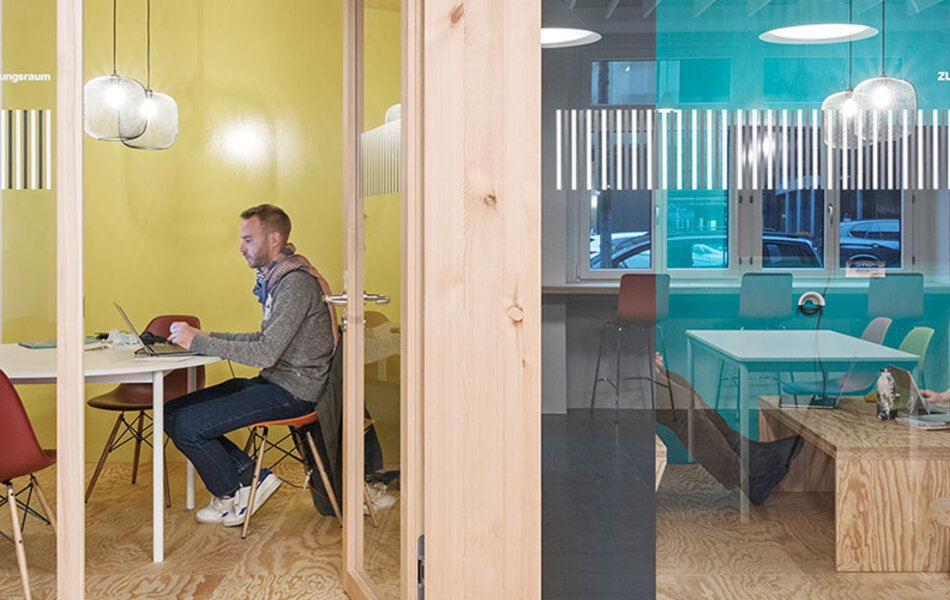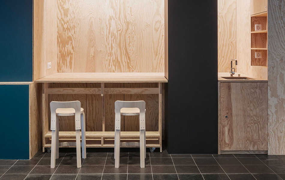Am Standort Lagerstrasse befinden sich verschiedene Institute der ZHAW. Im Erdgeschoss die ehemalige Caféteria, die öffentlich zugänglich ist. Die Räumlichkeiten entsprachen in vielerlei Hinsicht nicht mehr den Bedürfnissen der ZHAW, weshalb sie leicht saniert wurden. Das Konzept der Architekten: Nur das verändern, was wirklich stört, oder von behördlicher Seite gefordert wird. Die Grundhaltung, so wenig wie möglich oder so viel wie nötig zu verändern widerspiegelt sich auch in den Kosten und einer kurzen Bauzeit wieder. Das robuste Konzept verleiht den Räumen eine eigene Identität.